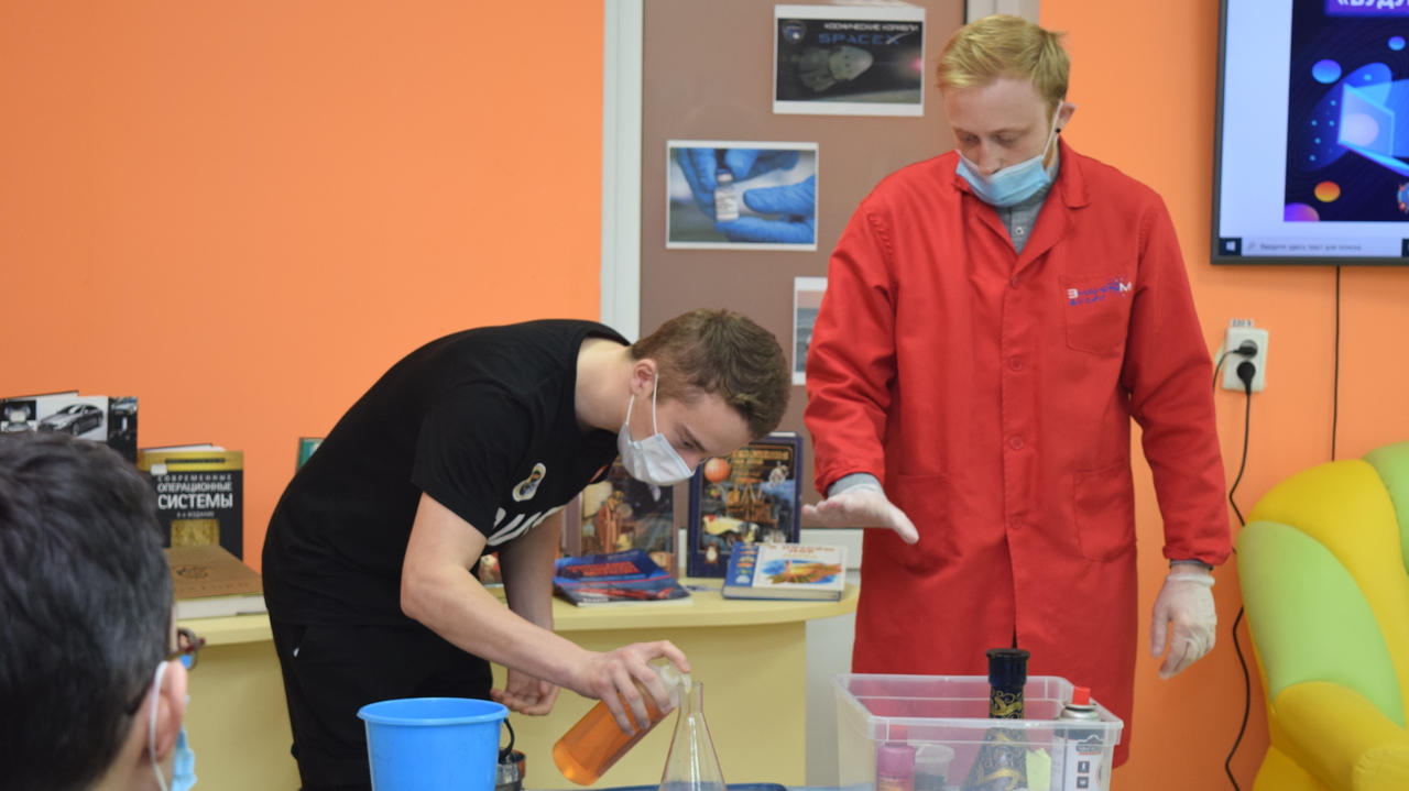 Применение интерактивных технологий в образовательном процессе описал представитель научно-развлекательного центра для всей семьи «Знаниум» Николай Горбунов, продемонстрировав несколько ярких химических опытов, в которых приняли участие гости библиотеки.